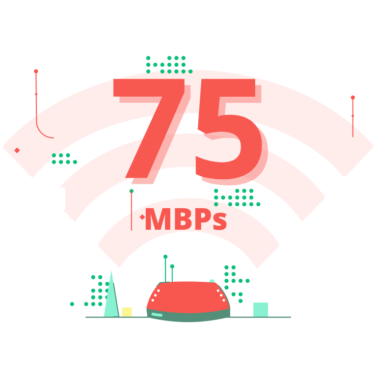 Experience unparalleled connectivity with our high-speed internet, featuring 75 Mbps download and 10 Mbps upload speeds. Whether it’s for seamless browsing, streaming in HD, or getting some work done, our unlimited internet plan has got you covered.